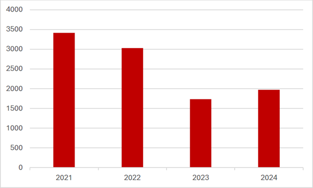 Even though the data shows a slight increase from fiscal year 2023 to fiscal year 2024, the number of adjusted reported transactions in fiscal year 2024 remained below the 10-year average of 2,131.
