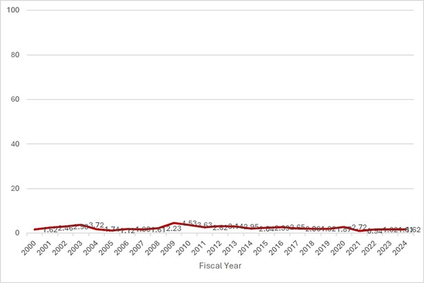 - Author calculations based on Annual HSR Reports to Congress, available